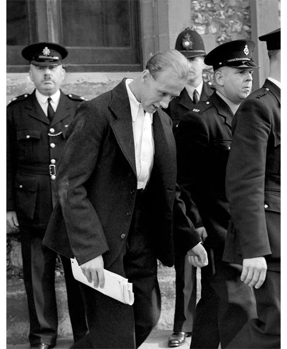 Ещё одна фотография, сделанная в середине дня 22 июля 1952 года при выводе Джона Страффена из психиатрической лечебницы «Бродмур» после окончания амбулаторной психолого-психиатрической экспертизы. На правом рукаве пиджака подсудимого хорошо видны