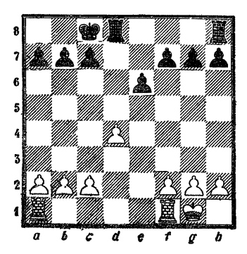 Сдвоенными являются также белые пешки f 2и f3. Черная пешка а6, которая не может быть защищена соседней пешкой своего цвета, уже ушедшей вперед, называется отсталой.