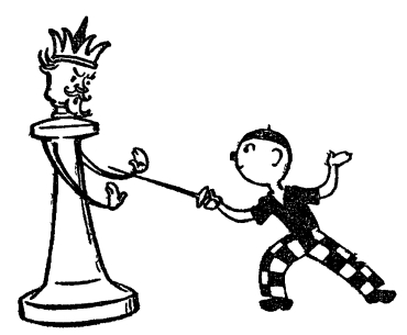 Вы помните, что основная цель шахматной партии создать позицию, в которой неизбежна гибель короля противника. К этому же стремится и ваш партнер, играющий фигурами другого цвета. Поэтому, несмотря на небольшую силу короля, который ходит и бьет фигуры только по соседним полям, его ценность несоизмерима с любой другой фигурой. Любую фигуру можно потерять или пожертвовать и все же выиграть партию. Но когда король попадает в безвыходное положение — конец всему!
