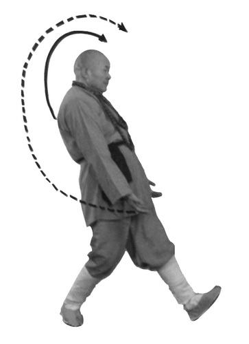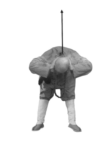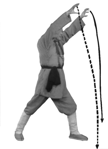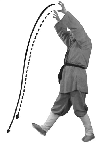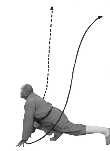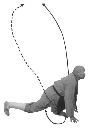Обратите внимание на то, что делая колющее движение «когтями тигра», вы сначала толкаете ладони вперед перед собой на медленном выдохе, затем, продолжая фазу выдоха, делаете резкий выдох через рот, немного ускоряя движение ладонями. Затем «когти тигра» идут вперед вниз, фаза выдоха продолжается. В конечной фазе, когда вы упираетесь пальцами в землю и концентрируетесь на кончиках пальцев, следует также представить, как ци идет вдоль позвоночника из области таза в голову и выдыхается через нос или рот.
