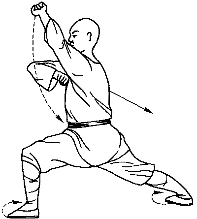 55. Чжуаньшэнь бинбу цзацюань – удар тыльной частью кулака сверху вниз в позиции бинбу с разворотом.