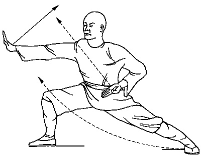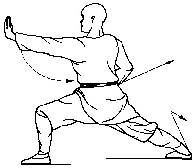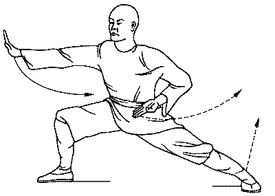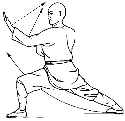 46. Чжуаньшэнь гунбу туйчжан – прямой удар ладонью в позиции гунбу с разворотом.