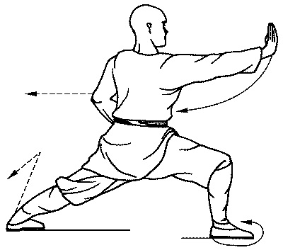 43. Чжуаньшэнь гунбу туйчжан – прямой удар ладонью в позиции гунбу с разворотом.