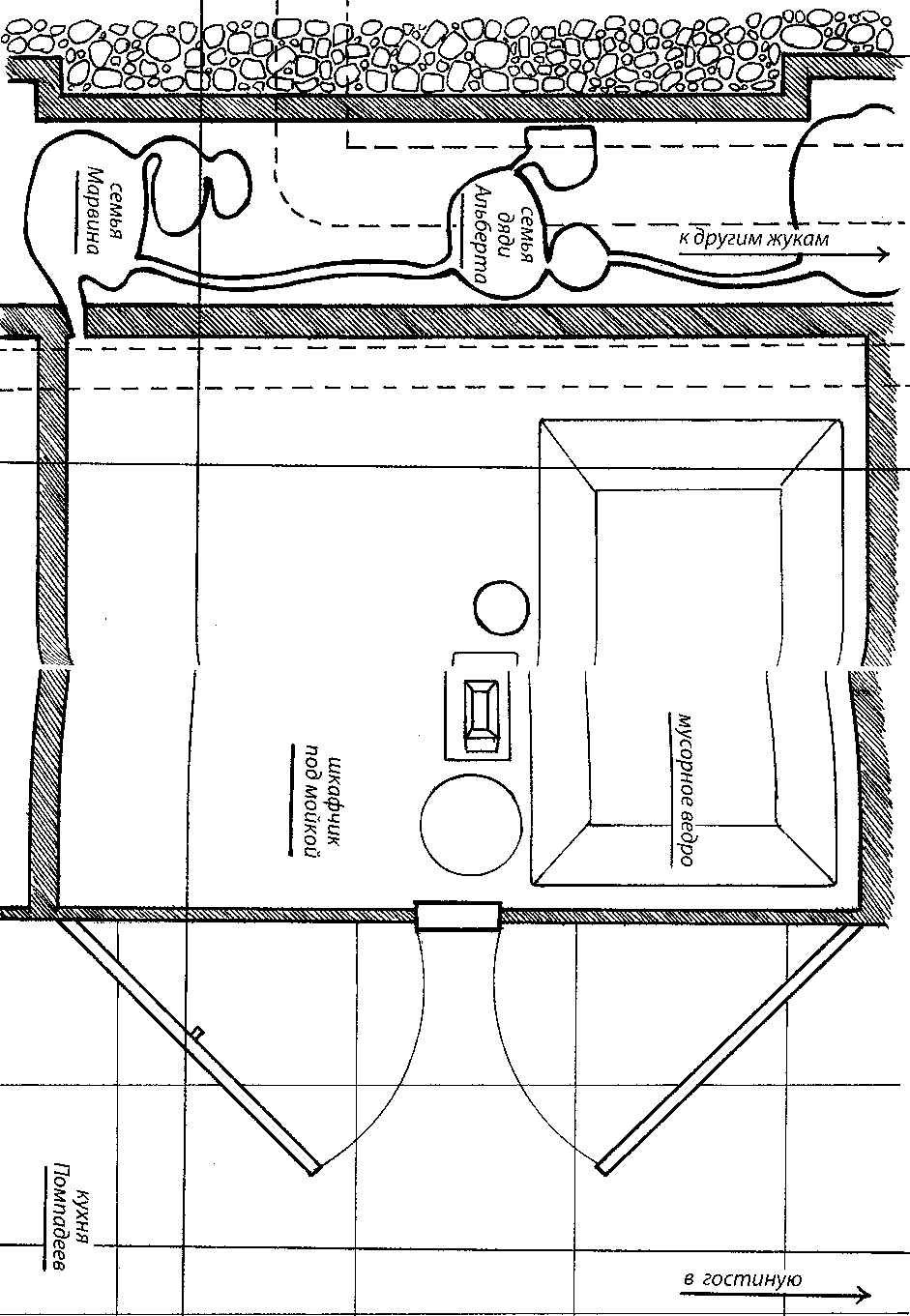 Семья Марвина жила в кухне под мойкой, в дальнем сыром углу. Труба слегка подтекала, поэтому штукатурка вокруг размягчилась и стала крошиться. Тут, прямо за стенкой, и прокопали три просторные комнаты. Отличное расположение, часто повторяли родители Марвина. Тепло — в стену вделаны трубы с горячей водой; сыро — значит, рыть легко; темно и плесенью пахнет — семейство Марвина всегда селилось в таких местах. А главное, под боком белое пластмассовое мусорное ведро, где всегда полно яблочных огрызков, хлебных крошек, луковой шелухи и фантиков от конфет. Есть чем подкрепиться!
