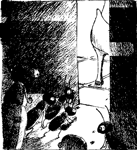 Марвин сполз с ватного шарика, служившего ему кроватью, и, еще не вполне проснувшись, поспешил за Мамой. В гостиной о чем-то разговаривали Папа, дядя Альберт и кузина Элен. Элен подбежала к Марвину и ухватила его за лапку.