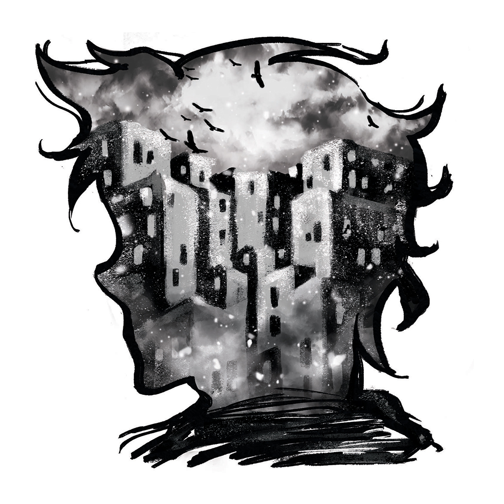 Нескончаемая улица. Идеальная геометрия. И одна маленькая ошибка, скромная иррациональность со смелым шагом, нарушающая всю идиллию – человек. Во всё тех же безжизненных цветах. Уверенная, но уже смертельно усталая походка вдоль панельной бесконечности, поношенная ветошная одежда, нарочито расстёгнутая навстречу смрадному ветру, тряпичная куртка, волосы, переливающиеся серыми оттенками, что так стремятся к небу, лицо агрессивно-угловатых черт в ответ на глупые квадраты панельных домов.