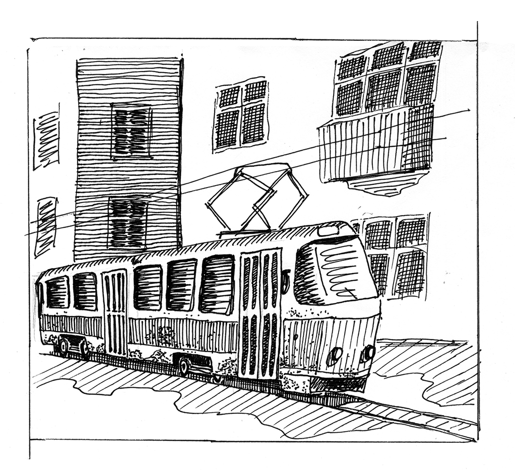 Уставший в тон ползёт по направляющим дорожкам ржавый умирающий вагончик, моргая коротящими фонарями. Неясно, кто старше: вагончик или сам бетонный функционализм вокруг. Неважно, кто чувствует себя хуже. Очевидно лишь, что созданы они были для иного времени. Сейчас же ими владеют умы более самолюбивые. Самолюбивые, но не безбожные. Никто и не отменял религию корысти. Умы эти и выгоняют умирающий уже третью жизнь подряд вагончик, крашенный поверх ржавчины в очередном желании урвать ещё немного.