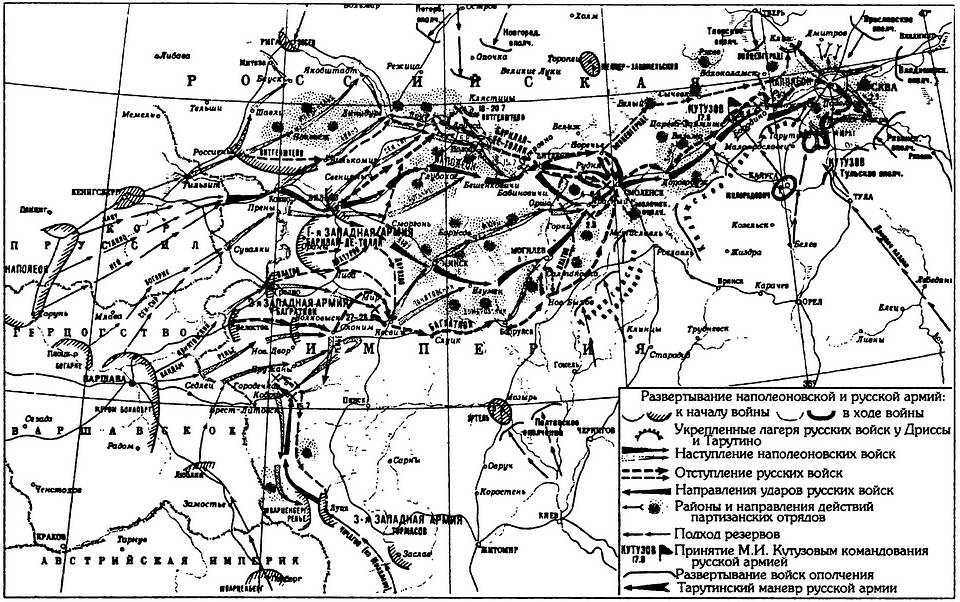 Кутузов, принимая армию, знал, что Барклай-де-Толли прав, что Наполеона погубят, если вообще что-нибудь его может погубить, отдаленность от базы; невозможность длительной, долгими месяцами ведущейся войны и нескольких тысячах километрах от Франции, в пустынной, враждебной громадной стране; недостаток продовольствия; непривычный климат. Но еще более точно Кутузов знал, что отдать Москву без генеральной битвы не позволят и ему, как не позволили это сделать Барклаю-де-Толли. И он решил дать эту битву — ненужную, по его глубокому убеждению. Излишняя стратегически, она была неизбежна морально и политически. В этом мнении сходились и иностранные наблюдатели: «Кутузов, наверное, не дал бы Бородинское сражение, в котором, по-видимому, не ожидал одержать победы, если бы голос двора, армии, всей России его к этому не принудил. Надо полагать, что он смотрел на это сражение как на неизбежное зло. Он знал русских и умел с ними обращаться».