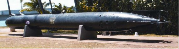 войны сжатый воздух стали использовать для сжигания спирта, что существенно повысило энерговооруженность торпед. Германскую, тех времен, обнаружили и подняли со дна в прибрежном районе Средиземноморья в 80-е годы XX века (вверху справа). Корпус торпеды сделан из медного сплава, что и позволило изделию хорошо сохраниться. В центре — 610 мм японская (тип 93) торпеда времен Второй мировой, пожалуй, тогда — лучшая в своем классе оружия. На кислород-керосиновом топливе она развивала скорость до 48 узлов (почти 90 км/час), а вес ее зарядного отделения составлял 780 кг. После Второй мировой при создании торпед полагались более не на мощность заряда, а на точное наведение. Такой была британская электроторпеда «Стингрей» (нижний ряд слева), с эффективной акустической головкой. Однако скачок в энерговооруженности — применение борсодержащего горючего, окислителем которого служит морская вода — заставил отказаться от самонаведения: в реве ракетного двигателя ничего не «слышно». У советской подводной ракеты ВА-111 «Шквал» вместо винта — сопло и она управляется по проводам, зато «летит» сквозь водяную толщу со скоростью 200 узлов