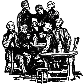 Вскоре он уже сидел в кругу собутыльников и, разгоряченный вином, с важностью разглагольствовал: