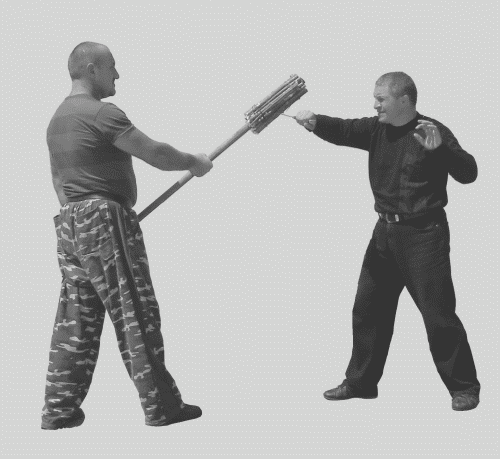 Отрабатываются колющие удары в восьми направлениях, в одноименной и разноименной, или фронтальной стойке. Сначала удары отрабатываются на месте, а затем в движении, со сменой стойки.