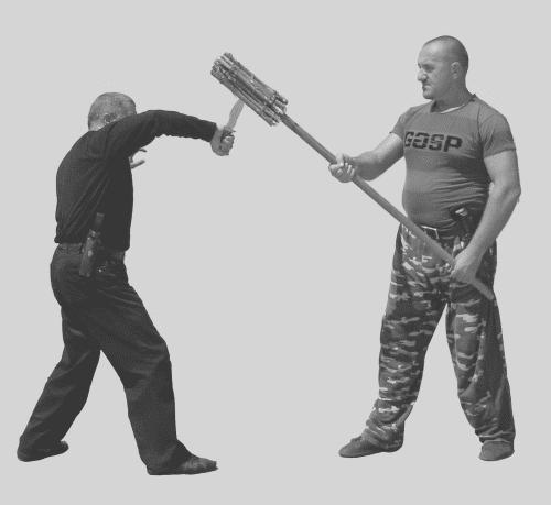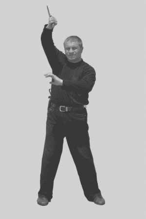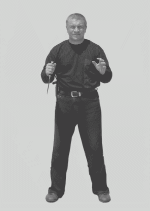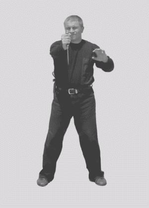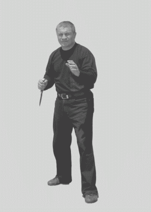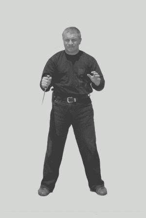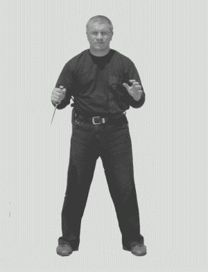 Упражнения на технику режущих ударов ножом отрабатываются во фронтальной стойке с использованием различных хватов ножа.