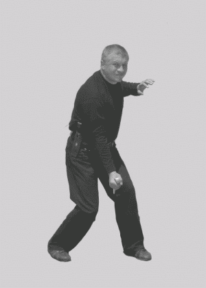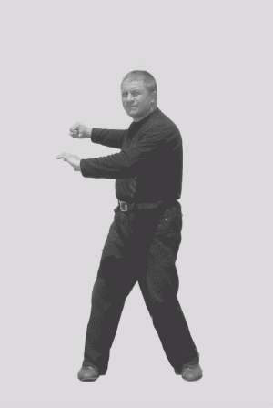 1. Колющий удар вперед из разноименной левосторонней стойки (фото 326, 327).