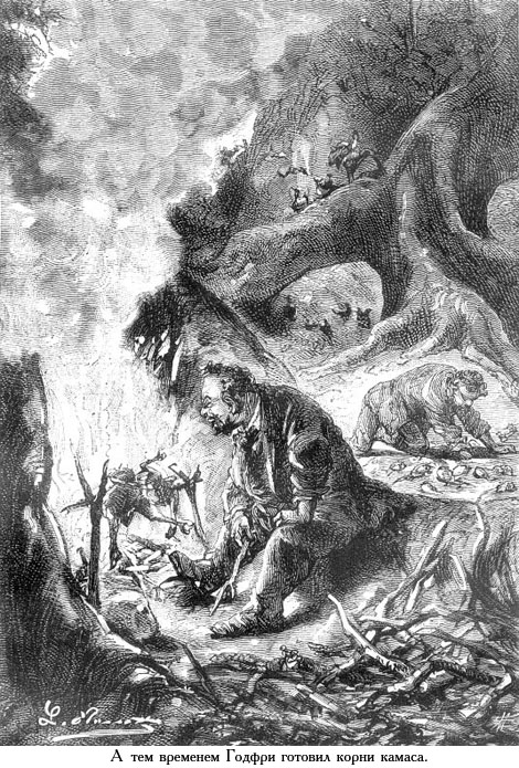 Однако Годфри и Тартелетт были лишены самой необходимой вещи — обыкновенного котелка — и его нечем было заменить. Ведь без него не приготовишь ни бульона, ни вареного мяса, ни рыбы! Приходилось есть все в жареном виде. Тартелетт горько жаловался, что забыл вкус настоящего супа. Но как ему помочь?