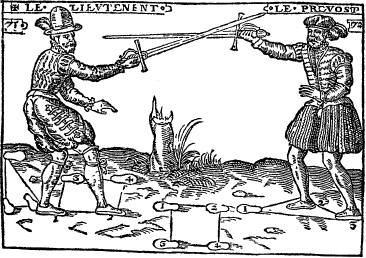 Примерно в то же время, когда в свет вышла книга Сен-Дидье, в стране обострилась политическая ситуация в том духе междоусобицы, который превратил «прекрасную Францию» в одну огромную champs clos [72] , где паписты и гугеноты, роялисты и лигисты каждый день мерялись силами, прибегая к худшему из доводов – оружию, – и, естественно, искусство фехтования вышло на первое место.