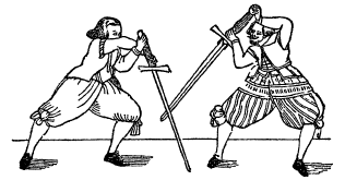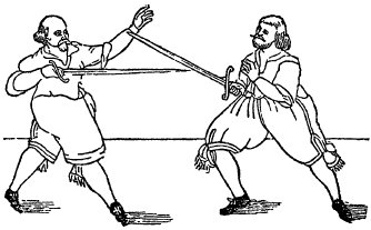 Все действительно относящиеся к фехтованию положения теории затронуты в этом отрывке. Но есть еще множество пунктов, которые с полной серьезностью излагает автор, считая их важными для понимания сложной науки о фехтовании, как, например, точное количество разнообразных углов, образующихся при движении между всевозможными частями человеческого тела. По его подсчетам, их, кажется, всего восемьдесят три.