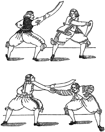 Как мы знаем, немцы всегда были превосходными фехтовальщиками; со своими дюсаками и мечами – таким же национальным оружием для Германии, как меч и баклер для Англии, – они, несомненно, занимали первое место. Но этим формам оружия суждено было исчезнуть, прежде чем появилась элегантная и более практичная рапира – Feder. В этом отношении, несмотря на свои прославленные фехтовальные