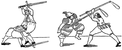 Разница между такой «хирономией» [27] и фехтованием совсем невелика. Очевидно, эти жонглеры или танцоры с мечами были первыми представителями тех искусных бойцов и мастеров фехтования, которые так часто упоминаются в елизаветинской литературе.