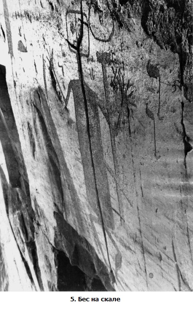 И верно: на скале возле беса в косых лучах заката выявились и другие высечки неолитных времён: выдра, подобно бесу распластанная по камню, с длинным хвостом, вытянутым в струну и словно замершим на высокой ноте; разбросанные по камням разных размеров олени; грациозная рыба с острой мордой и телом, утоньшающимся к хвосту до нити; полёт изящных уток... Мелодии шей и хвостов сливались певуче, утешно.