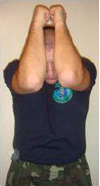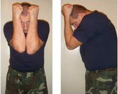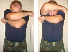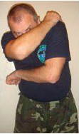 Двойная локтевая блокировка от сильных прямых ударов в голову.