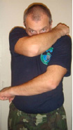 Глухая локтевая защита. Данный вид защиты есть наследие русской школы кулачного боя, принесенное в штурмовой бой ГРОМ в виде защитных элементов жесткого боя без перчаток. Во избежание увечий под шквалом самых жестоких ударов, чтобы остановить атаку яростного противника, боец был вынужден подставлять под голые кулаки противника самые прочные и менее чувствительные к боли части своего тела (локти) с целью повреждение кулаков атакующего противника.