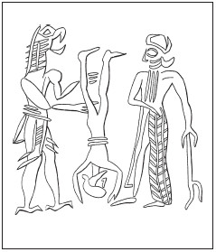 Илл. 81. Нергал, повелитель Подземного царства, дает указания демону по поводу наказания грешников. Прорисовка оттиска цилиндрической печати. Старовавилонский период