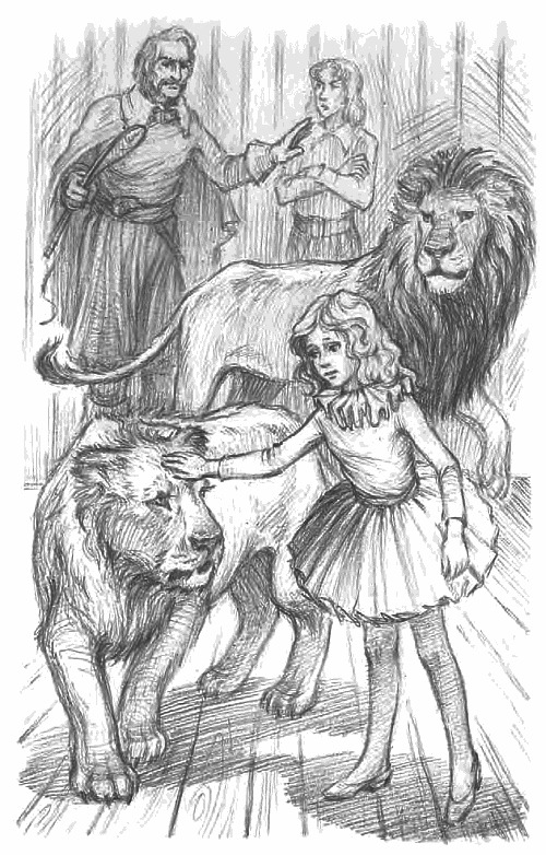 Сибирочка робко протянула руку и коснулась дрожащими пальчиками гривы обоих зверей, не отводя от них своего синего взора.