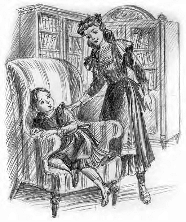 И только что я успела подумать это, как ясно почувствовала прикосновение волшебной палочки к моему плечу. Я тихо вскрикнула и подняла голову. Но не златокудрая фея в золотом одеянии стояла передо мной, а красивая, стройная девочка лет пятнадцати или шестнадцати, с чудесными черными локонами, небрежно распущенными по плечам, в коричневом форменном платье и черном фартуке.