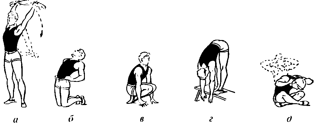 И. п. — стойка на коленях, руки на поясе: наклоны прямого туловища назад (рис. 3, б).