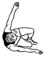 Перекат на бок. Сесть на ковер, поджав ноги и прижав подбородок к груди, согнуть спину, вытянуть руки вперед. Перенести тяжесть тела на правую ягодицу и сделать перекат на правый бок от ягодицы до лопатки и обратно в положение сидя. Сделать то же на левый бок.