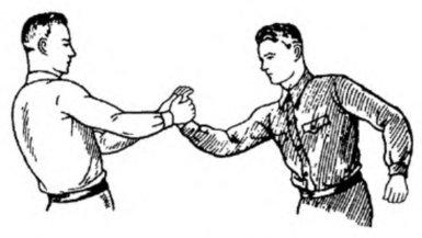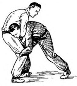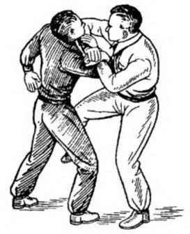 Рис. 393. Освобождение от обхвата туловища спереди.