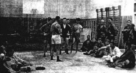 Анатолий Харлампиев демонстрирует приёмы самозащиты. Начало 19 30-х гг.