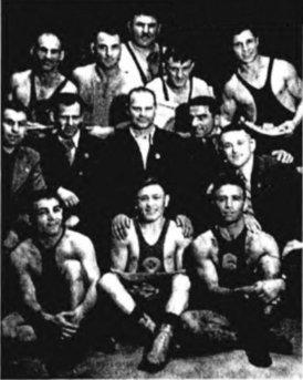 Участники 1-го Всесоюзного сбора ДСО «Динамо». Сидят (слева направо): Шепелев, Хованский, Рубанчик, начальник сбора Жамков, старший тренер сбора Харлампиев, Зарубин, Томашвили. Стоят: Курдов, Салмин, Пустынников, Смирнов, Пыльнов. Март 1941 г.