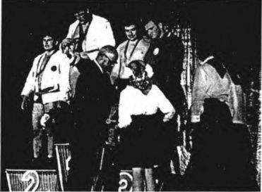 Дочь Н.И.Подвойского Нина Николаевна проводит награждение победителей М емориальных соревнований.