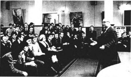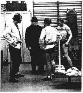 Доцент кафедры физического воспитания Московского энергетического института А.А.Харлампиев со своими учениками. Середина 1960-х гг.