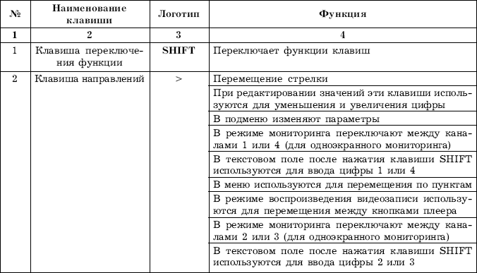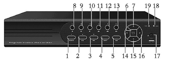 Рис. 1.14. Функциональное назначение клавиш на лицевой панели видеорегистратора: