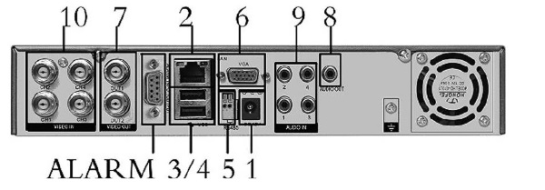 Рис. 1.15. Вид на заднюю панель для подключений видеорегистратора:
