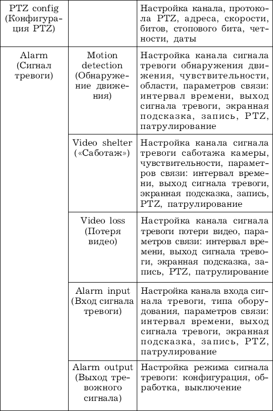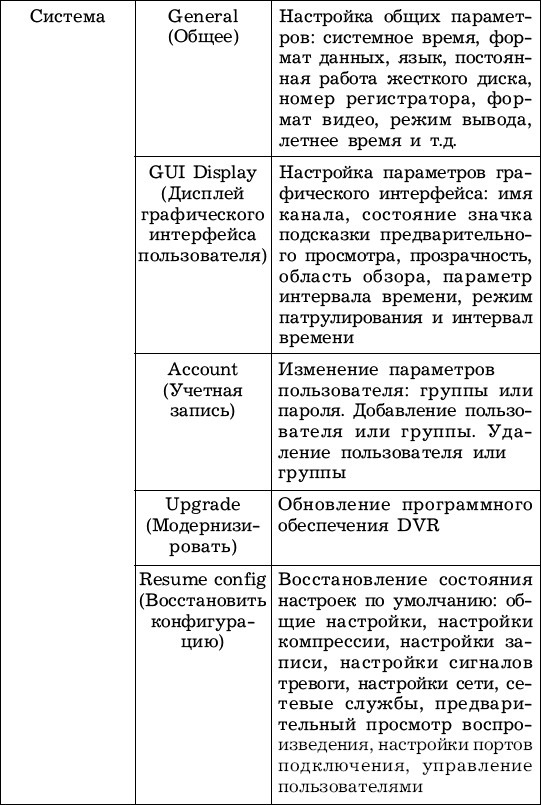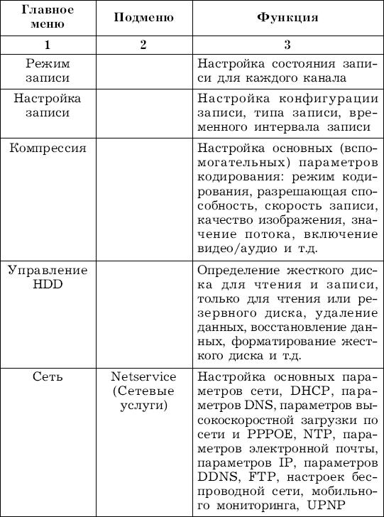 Основные функции состоят из мониторинга реального времени, функции записи, функции резервного копирования, функции воспроизведения видеозаписи, сетевых функций, функций выбора вариантов действия по тревоге, коммуникационного интерфейса и функции управления с помощью