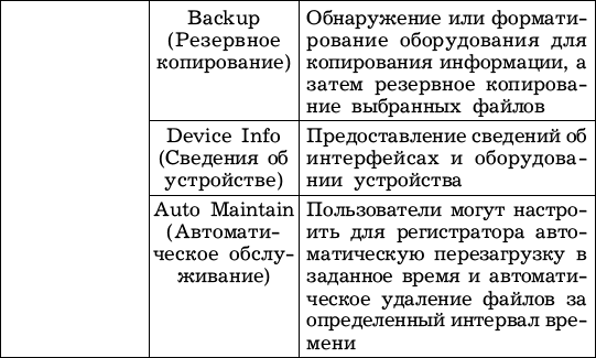 В табл. 1.1 представлен функционал клавиш видеорегистратора.