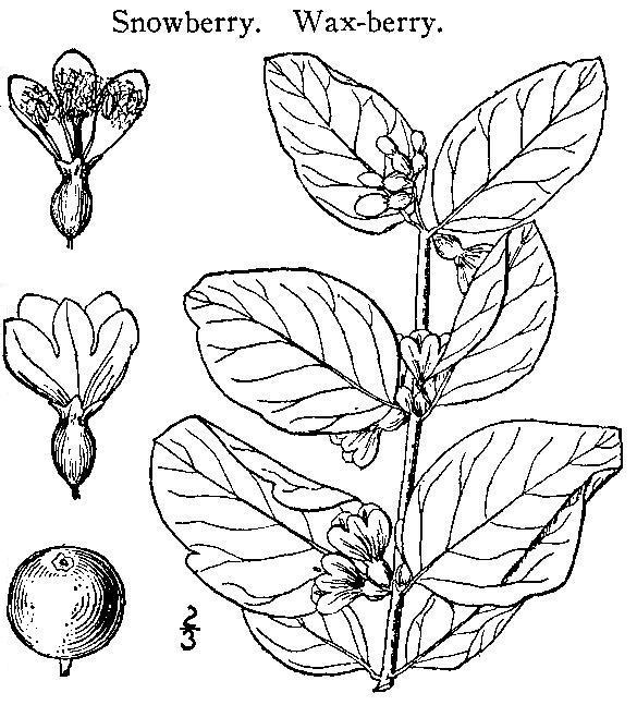 К счастью, это не какое-нибудь ядовитое волчье лыко, а снежноягодник мягкий (лат. Symphoricarpos mollis Nutt.). Снежноягодник, или снежник, или снежная ягода, или волчья ягода — род листопадных кустарников, семейство Жимолостные. Некоторые его разновидности хорошо известны у нас — их разводят как декоративное растение, а дети любят давить его ягоды, лопающиеся с довольно громким хлопком . Ягоды несъедобны. Индейцы использовали измельчённые листья снежноягодника мягкого для лечения язв и ран, отвар коры — для лечения туберкулёза и венерических заболеваний, плоды как слабительное средство, а настой корней — для лечения простуды и зубной боли. Из побегов снежноягодника делали стрелы и свирели. Растение содержит ядовитые вещества — сапонины, но они не очень опасны. Растёт в основном на сухих, солнечных склонах и на открытых местах в лесу, хотя может встречаться и в тенистых растительных сообществах. Это растение входит в экосистемы чапараля. Высокий ползучий кустарник высотой до 1,5 метров. Его стелющиеся побеги могут достигать длины 3 метров