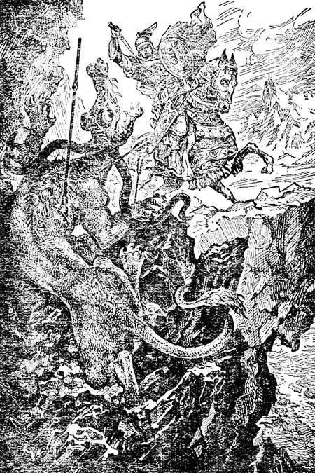 Драконолев пожирает царевну. Бахрам убивает чудовище. Хакан отдает Бахраму свою дочь и царство