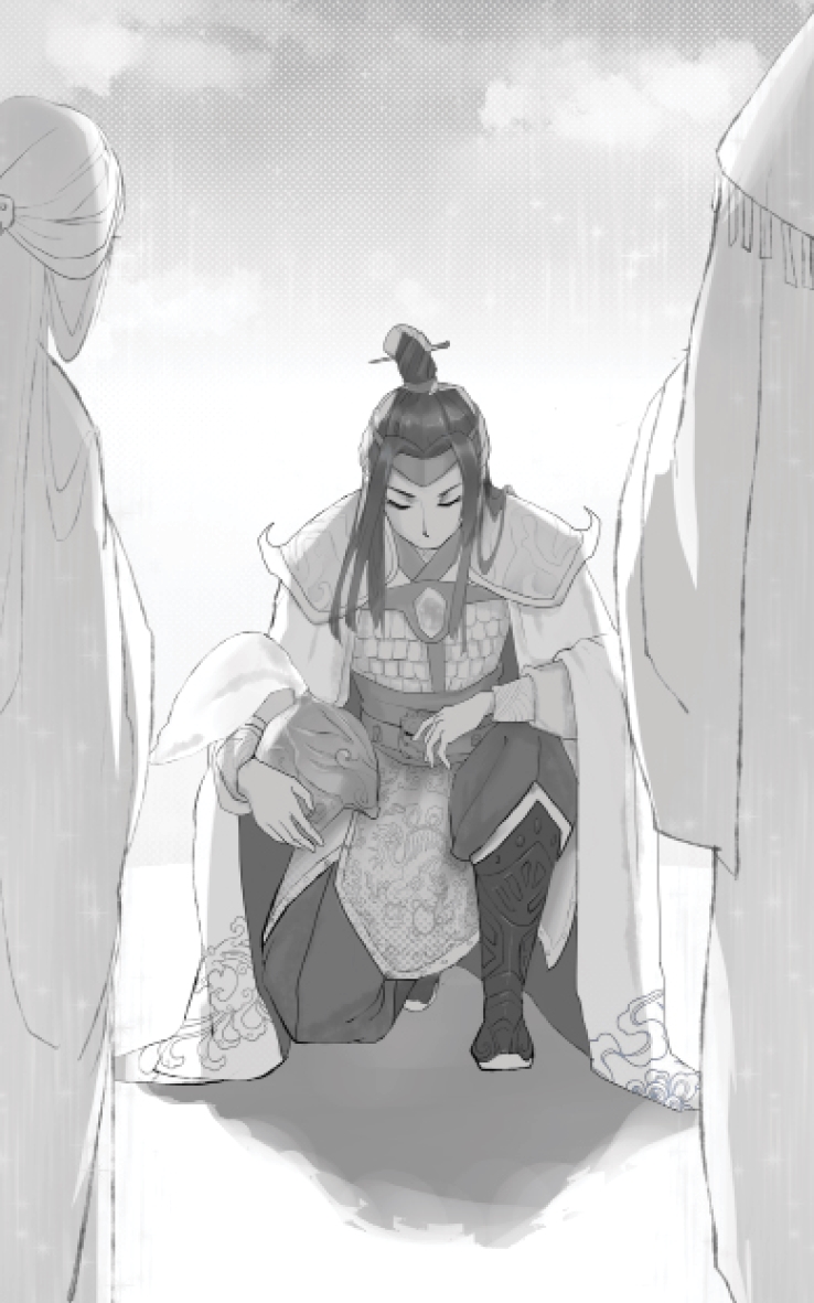 Видела и красивое и решительное лицо в свете солнца. Улыбаясь, со спокойным и искренним взглядом он медленно вышел вперед и опустился на колени перед правителем, который надел ему на шею кулон в форме ослепительного золотого щита – символа главнокомандующего.