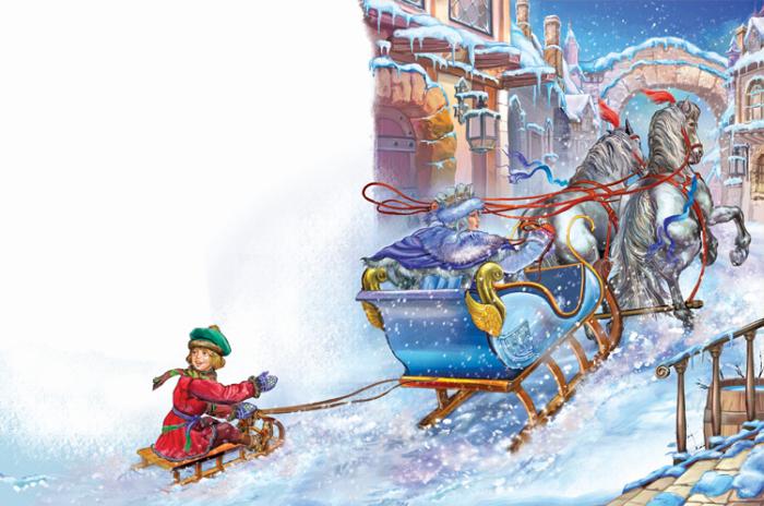 Посадила она мальчика в сани, завернула в свою медвежью шубу. Кай словно в снежный сугроб опустился.