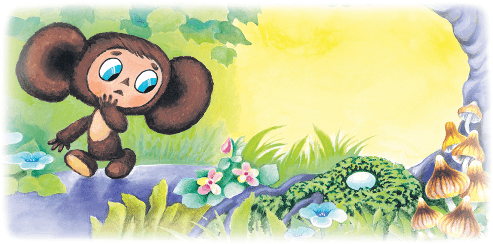 Чебурашка поднял яйцо, залез на дерево и положил его в дупло.