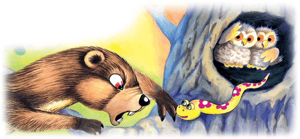 Чебурашка шёл по лесу и заметил на земле, на моховой кочке, яйцо.Он не знал, что это яйцо очень ужалистой змеи.