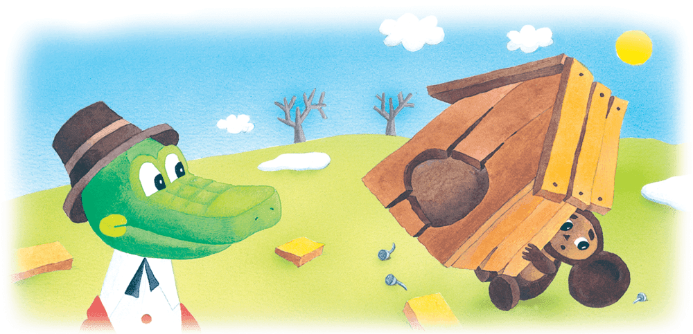 Как вы знаете, Чебурашка жил в телефонной будке. И обычно он ходил в гости к крокодилу Гене, потому что у него дома было слишком тесно.