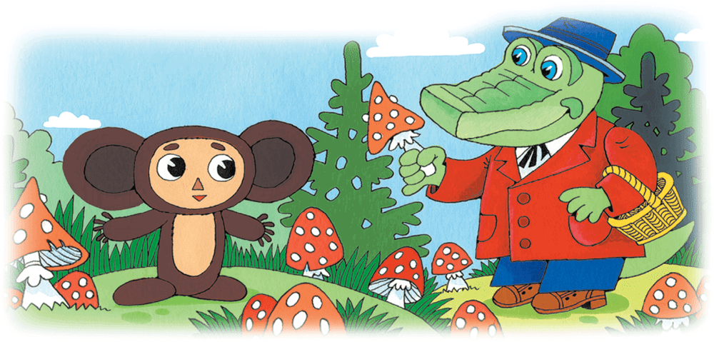 Гена и Чебурашка собирали грибы. Но у них плохо получалось. Всё время попадались мухоморы.
