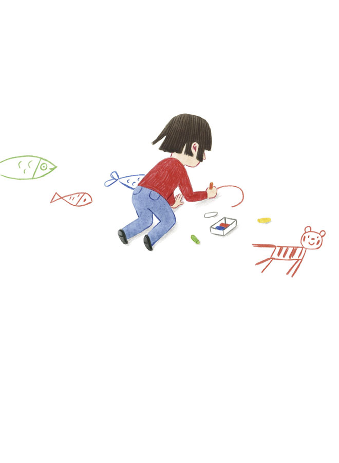Обратно мама и Кейти всегда шли пешком, а лев и тигр неторопливо шествовали по обе стороны от них. На повороте около продуктового магазина животные свернули налево – к лесу, а мама с Кейти пошли направо – домой. Они перешли дорогу на зелёный свет, заглянули в гости к цветочнику, поиграли с соседской собакой, немножко покачались на качелях, а после зашли в кафе и выпили по чашке мятного чая. Так что когда они пришли домой, Кейти была уставшая и всё время зевала. Мама сразу же переодела её в пижамку, уложила в кровать и поцеловала в нос. Потом она накрыла Кейти одеялом, села около кровати и спросила:
