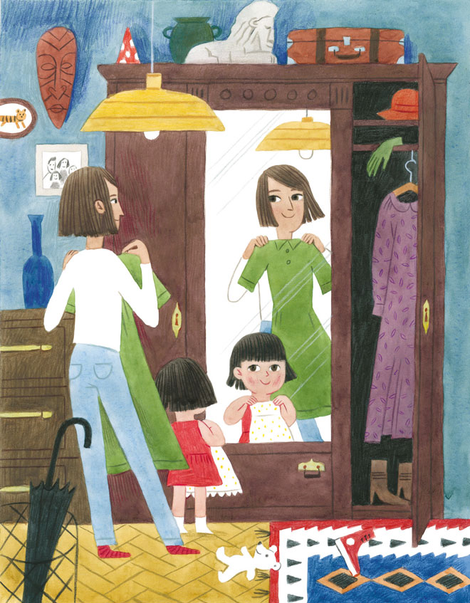 – У тебя есть белое платье в жёлтый горошек. Может быть, его? – предложила мама.