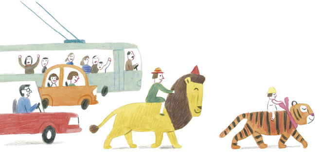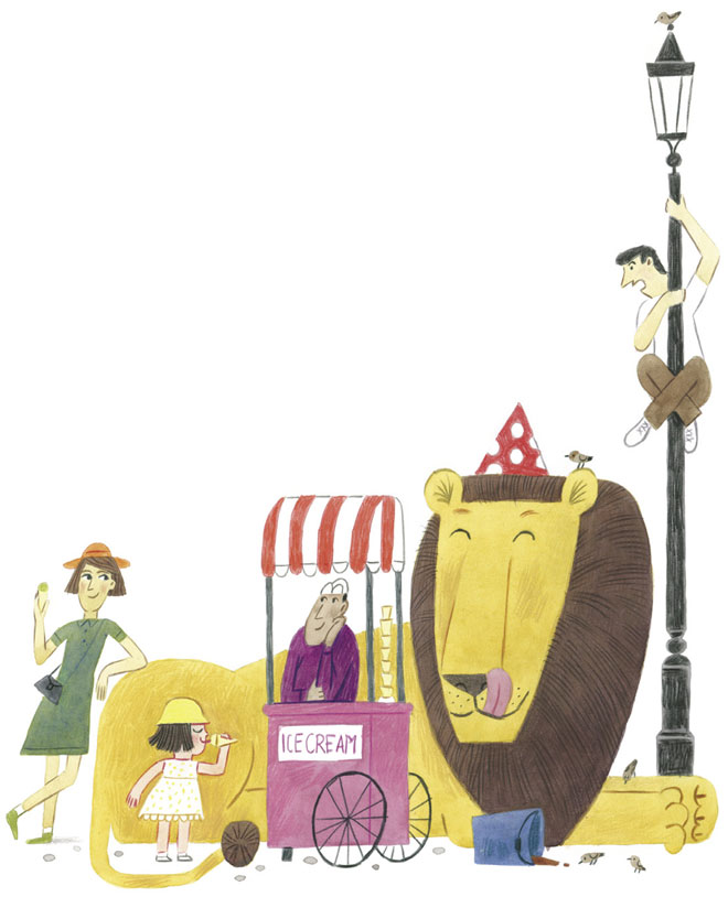 Кейти и мама спустились по лестнице. Внизу их ждали невозмутимый тигр и сонный лохматый лев. Тигр грелся на солнышке, а лев лениво чесал ухо задней лапой и зевал. Кейти всегда ездила за мороженым на тигре, а мама – на льве. Все соседи уже привыкли к такому странному способу передвижения, и только совсем-совсем чужие люди, видевшие зверей впервые, испуганно прижимали к себе детей и разбегались в разные стороны. Но мама и Кейти не придавали этому абсолютно